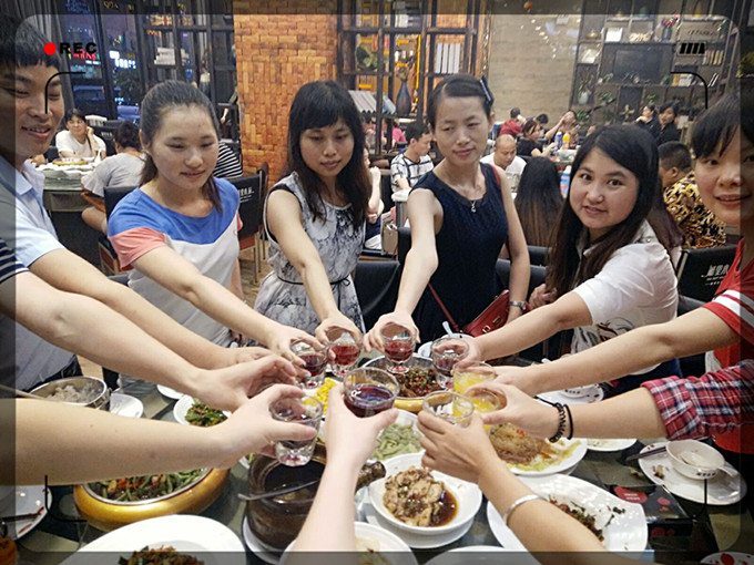 表彰大會會畢,唐經理為了慶祝本部門上月取得的優異成績,一部開心的聚餐,舉杯恭祝智絡軟件越來越好,再接再厲!