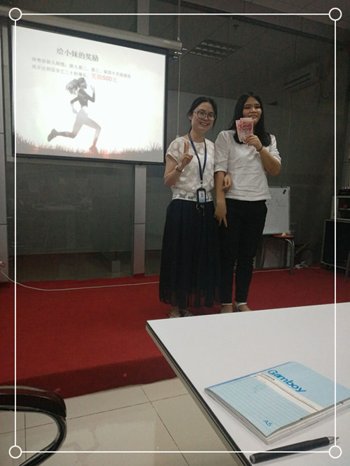 會議尾聲還有一個特別的獎勵就是給我們的二部的新人小妹,新人目標增長達成的獎勵,智絡的獎勵機制豐富,只要你有表現有進步就能得到回報,大大的500元喲。同時智絡的其他新人們,也要向小妹看齊,拿到這個獎金喲。